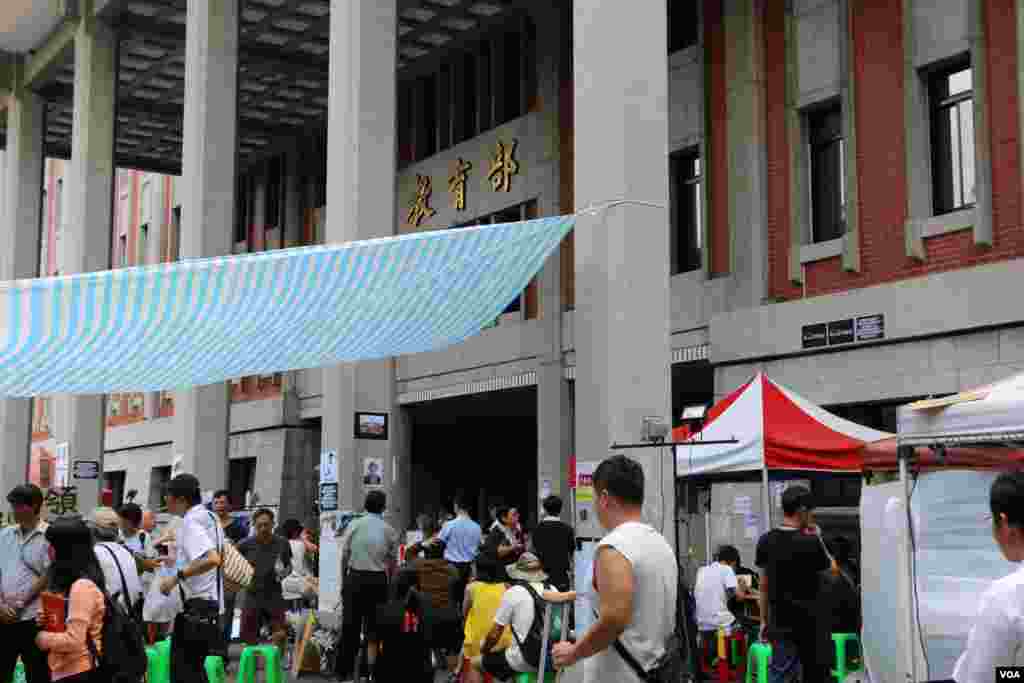 连日高温的台北,即将迎来可能袭来的“苏迪勒”强台风,在教育部广场抗议的学生说,如果他们的诉求达不到,他们将在台风中继续抗议。