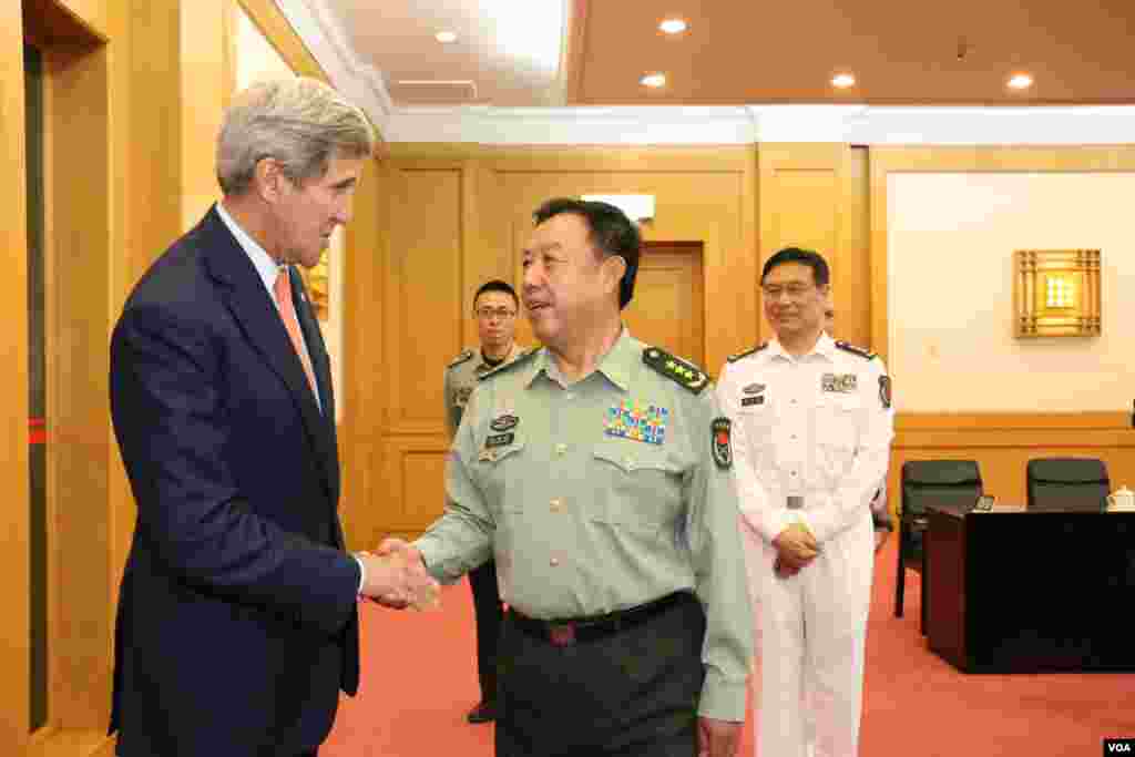 中央军委副主席范长龙与克里握手(美国之音莉雅拍摄)