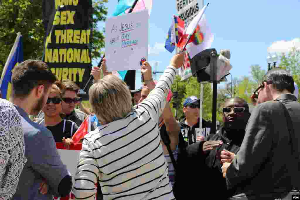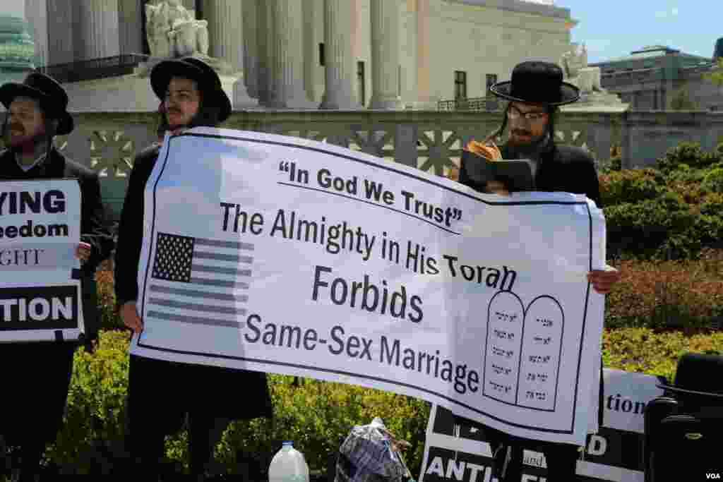 2015年4月28日反对同性婚姻的活动人士聚集在高等法院外面示威(美国之音杨晨拍摄)
