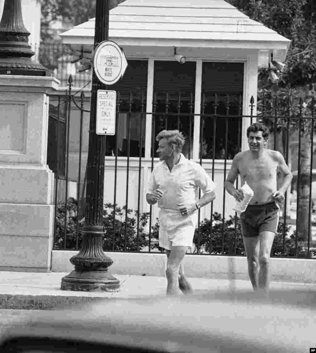 1979年8月6日,美国总统的国家安全顾问布热津斯基和助手不顾炎热天气,在白宫外面跑步