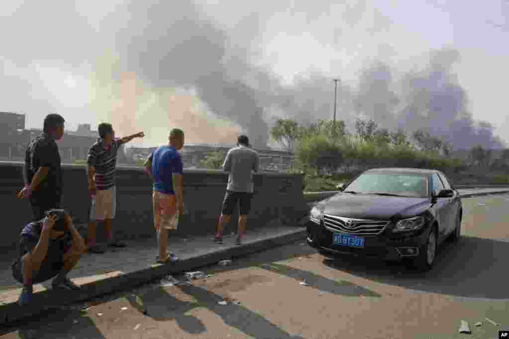 中国东北港口城市天津发生爆炸,造成至少50人死亡,数百人受伤。爆炸十二小时后,消防队员还在跟大火搏斗。被炸毁的社区一片废墟,象发生过战争一样......