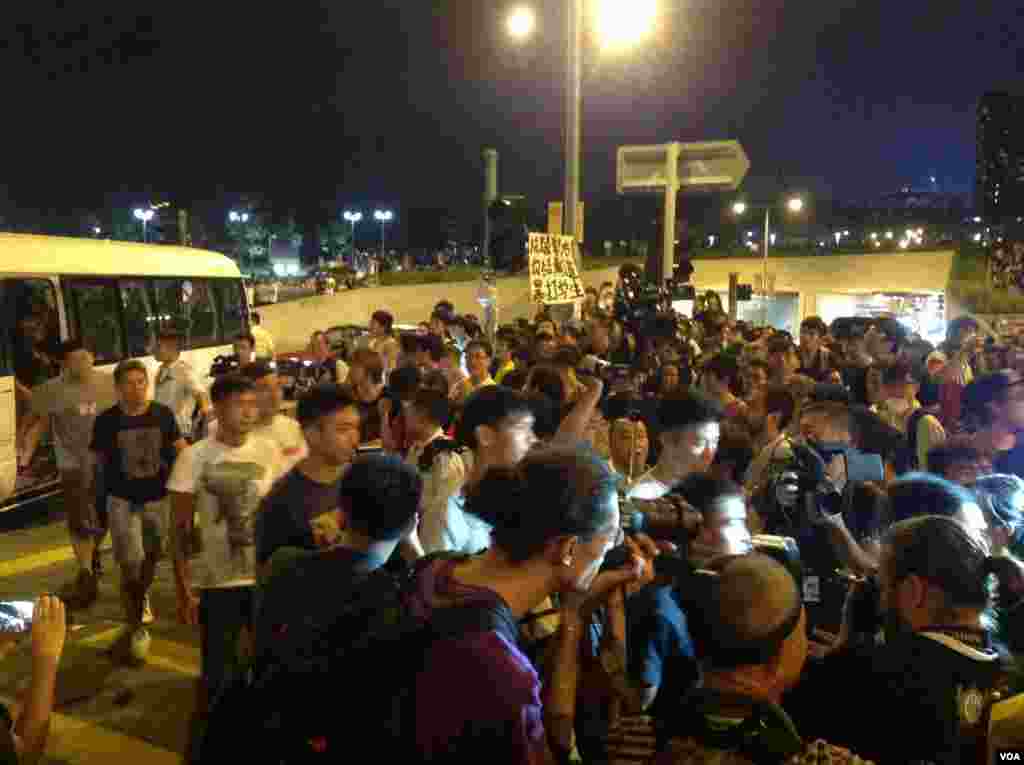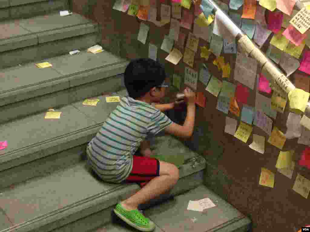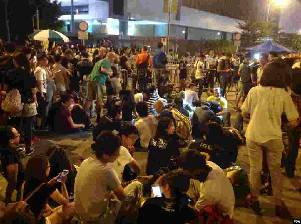 在各界呼吁撤离声中示威者继续坚守特首办(美国之音海彦拍摄 )