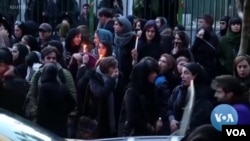 在德黑兰一所大学外面,一群抗议者高呼:“他们在撒谎,说我们的敌人是美国,我们的敌人就在这里。”。