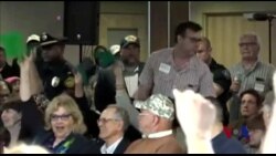 共和党议员汤姆.麦克阿瑟在新泽西州召开市民会议,会场一片讨伐之声。