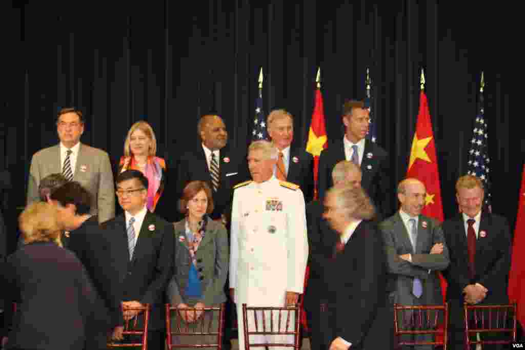 美国代表团部分成员,中间的军人为美军太平洋司令部司令洛克利尔(美国之音林枫拍摄)