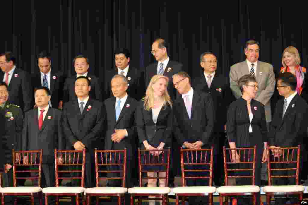 美中战略与经济对话在华盛顿举行。双方代表就网络安全、人权和经济改革等一系列问题进行了坦率的对话,在肯定共同利益的前提下,双方也坦承在一系列问题上存在尖锐分歧。但这组合影照片的官方名称叫“全家福”(family photo),显示和谐景象。由美国之音记者林枫7月10日在美国国务院拍摄。